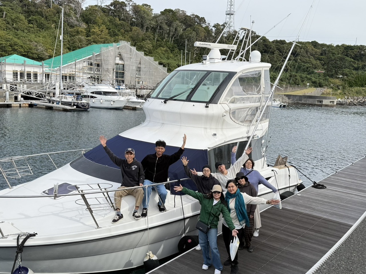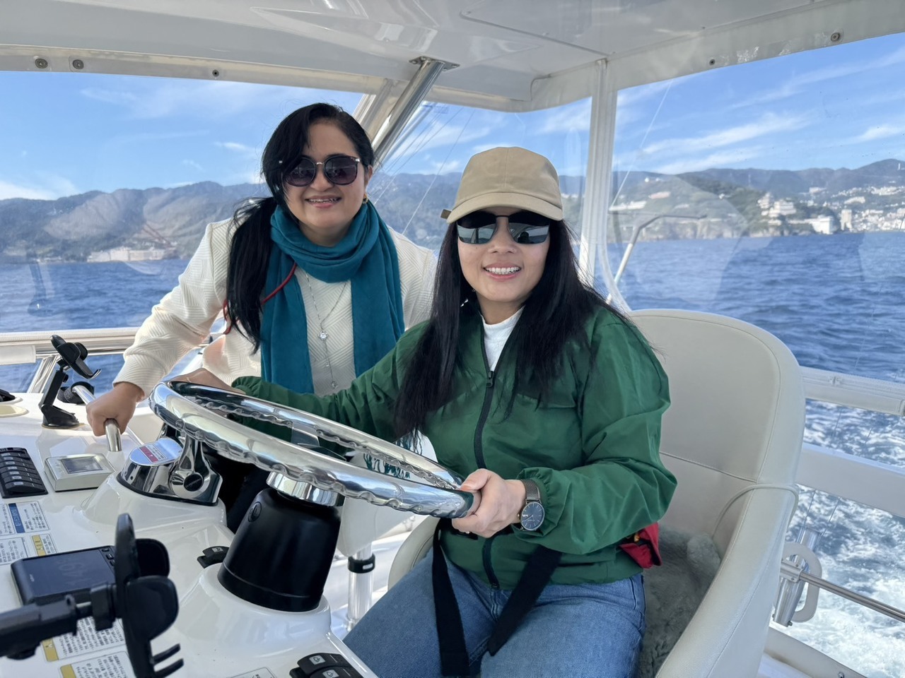 2日目は前回同様、快晴のもと、クルーザーで初島へ。爽快なクルージングを楽しみ、新鮮な海鮮グルメを味わいました。